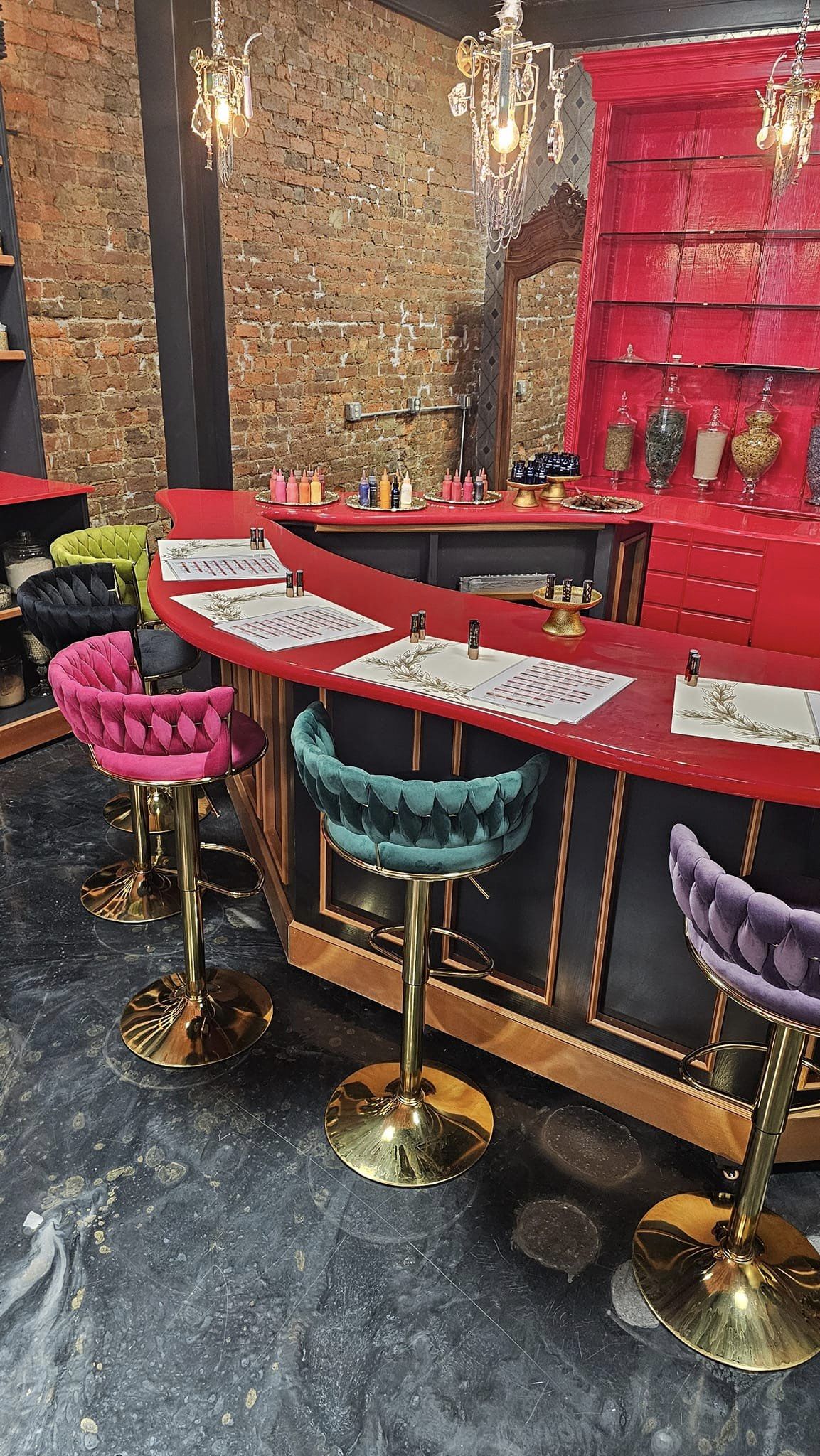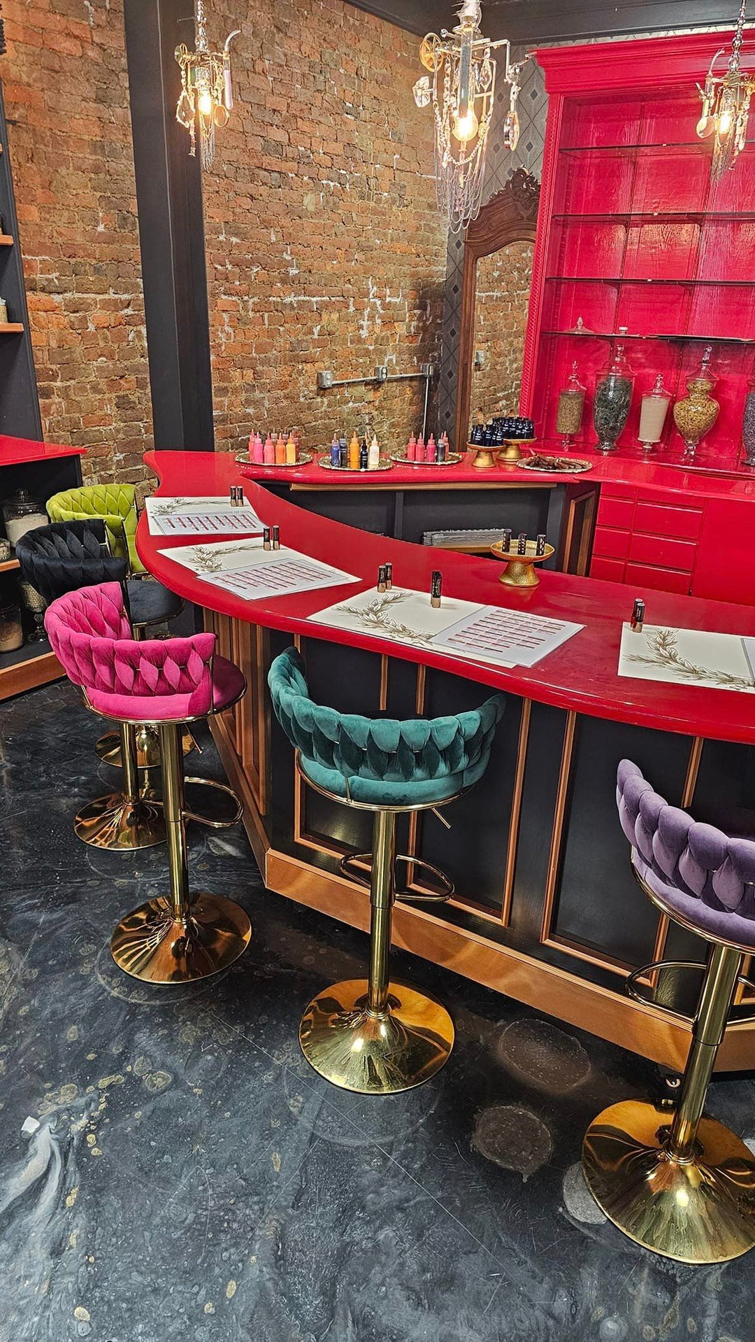 Villainess Alchemy's beauty lair offers communial seating for up to 8 creatrixes at our Lip Bar.